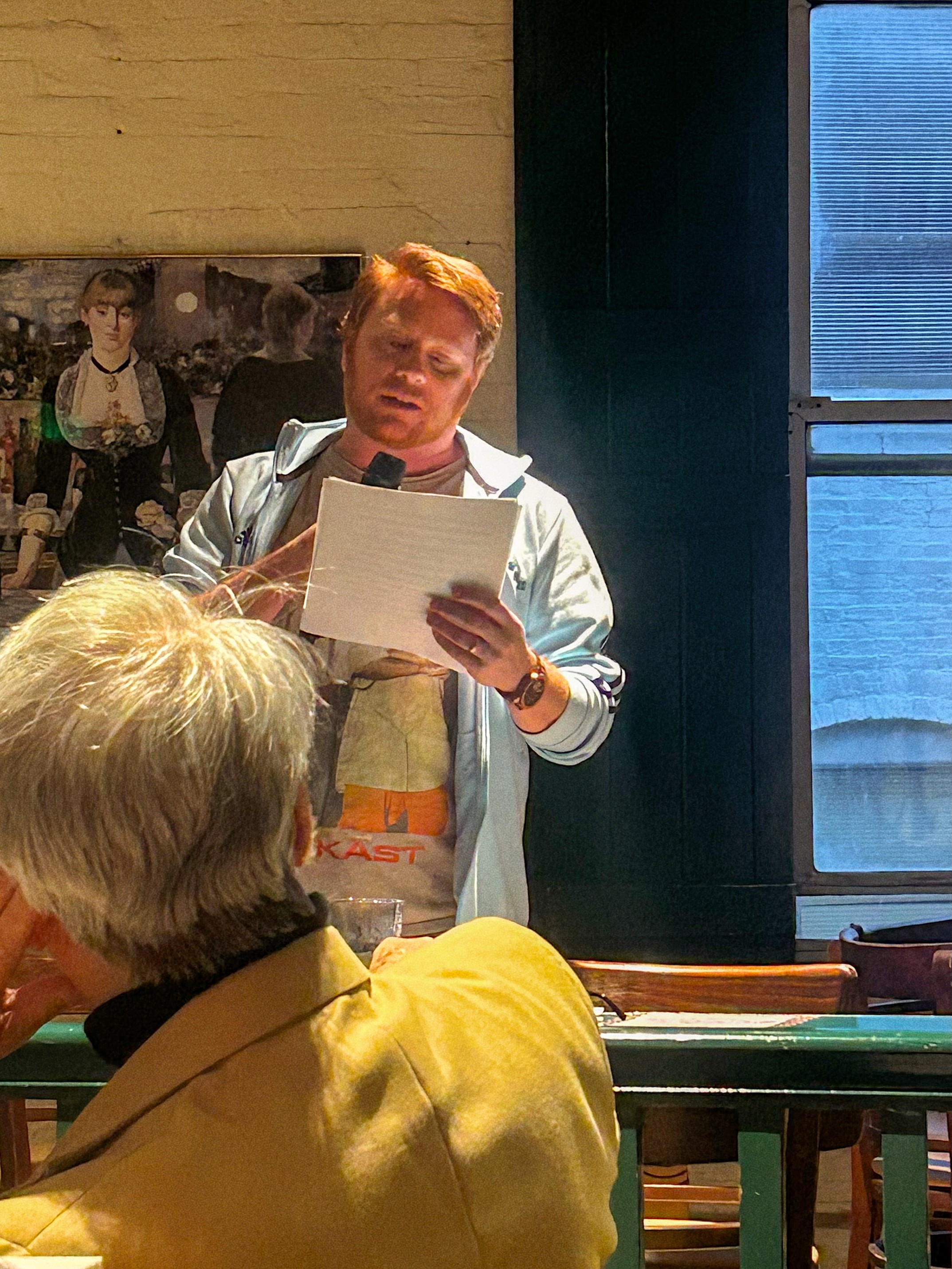 Then, Brooklyn. March 12 at Kent Ale House in Williamsburg - where Ted was joined by H.M. Ryan, who read the prologue to his next novel to 20+ people who braved hideous, hideous weather to come listen to fiction on a Thursday night.